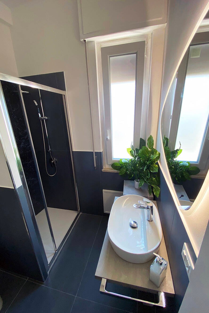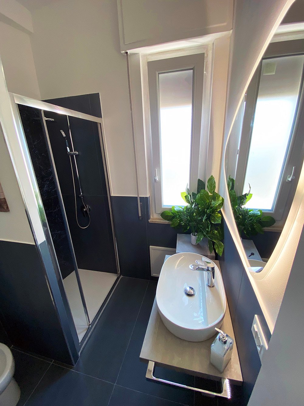 Design contemporaneo, dotato di tutti gli accessori e un’ampia doccia rigenerante.